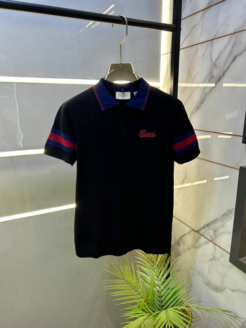 Gucc i Black Imported knitted Premium Collar Neck Polo T-shirt F3557-BL