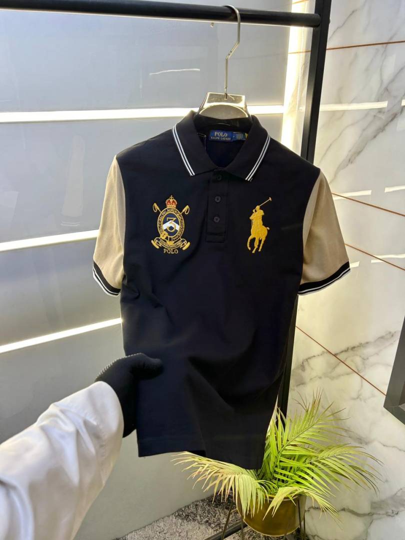 Ralp h Lauren Black Polo Premium Collar Neck T-shirt F2909-BL